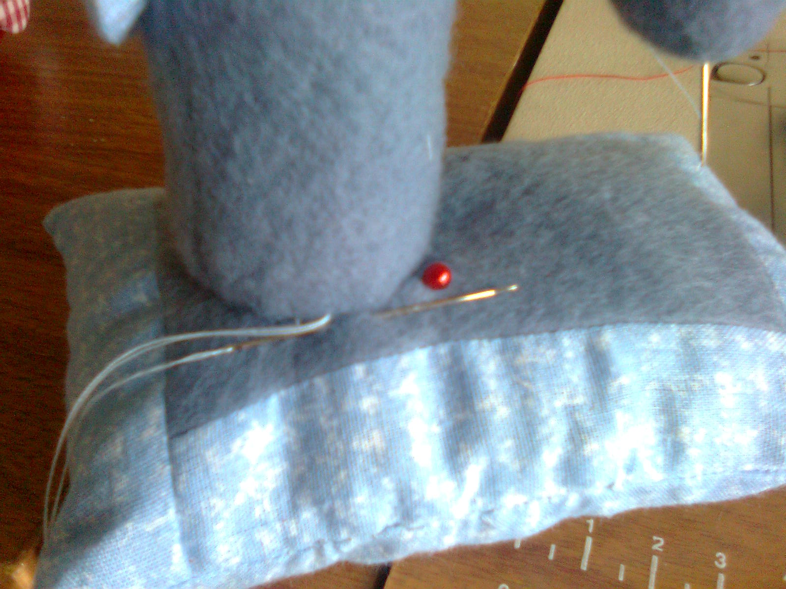 Antes de montar la maquina en la almohadilla, fruncí con un hilván la parte inferior